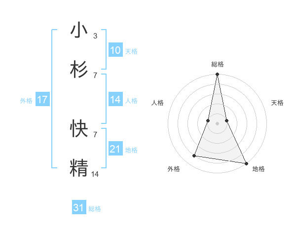 小杉 快精さんの総格は31画の5点!