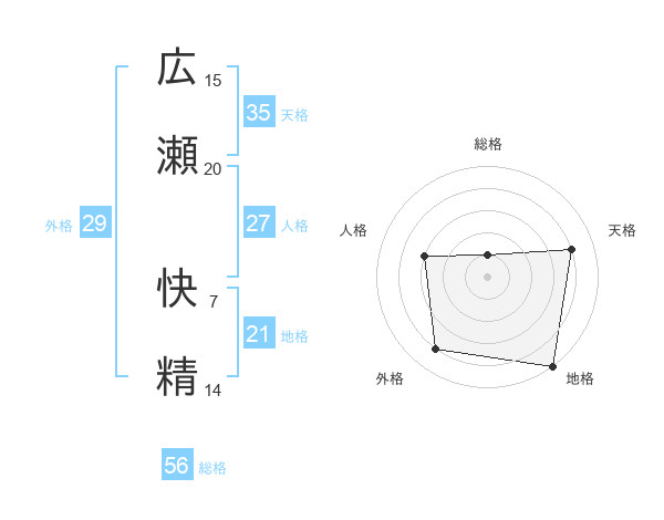 広瀬 快精さんを姓名の画数から五運を鑑定