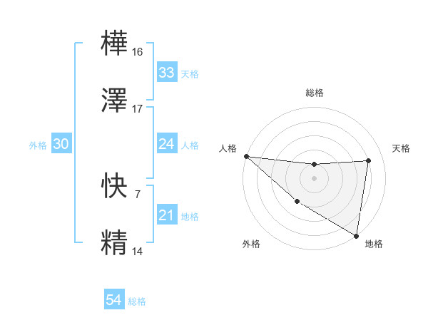 樺澤 快精さんを姓名の画数から五運を鑑定