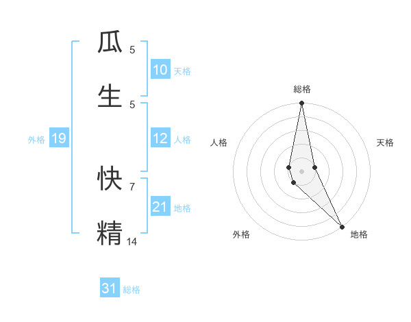 瓜生 快精さんを姓名の画数から五運を鑑定