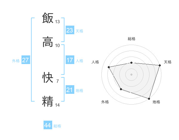 飯高 快精さんの総格は44画の2点!