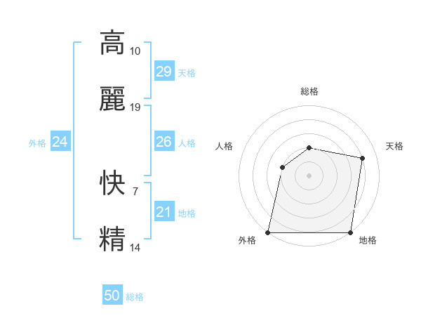 高麗 快精さんの総格は50画の2点!