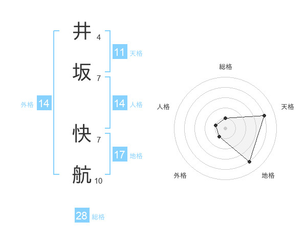 井坂 快航さんの総格は28画の1点!