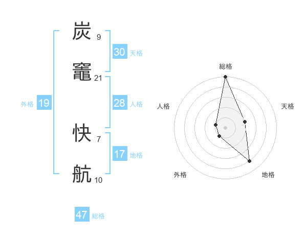 炭竈 快航さんを姓名の画数から五運を鑑定