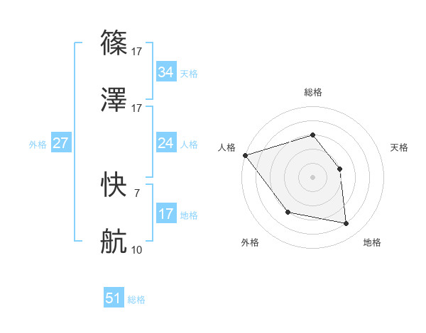 篠澤 快航さんの総格は51画の3点!