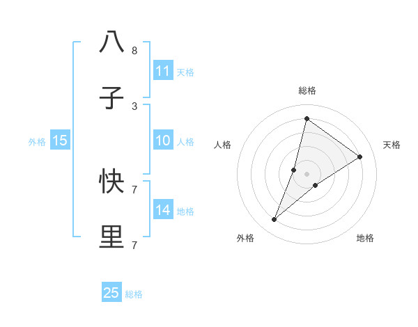 八子 快里さんの総格は25画の4点!