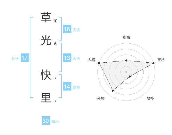 草光 快里さんの外格は17画の4点!