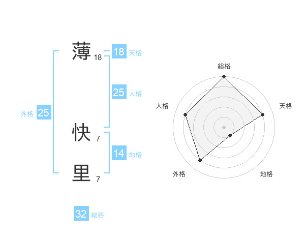 薄 快里さんの天格は18画の4点!