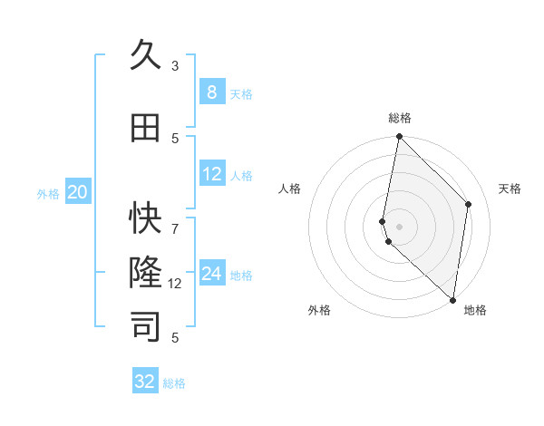 久田 快隆司さんを姓名の画数から五運を鑑定