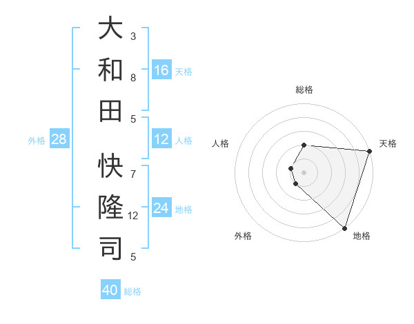 大和田 快隆司さんの総格は40画の2点!