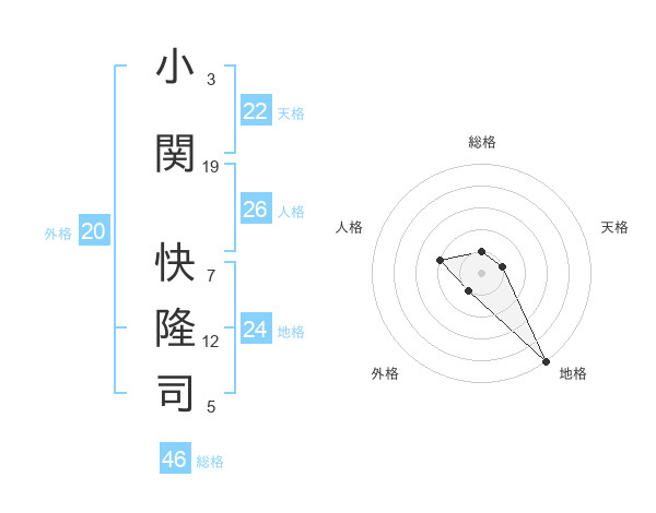 小関 快隆司さんを姓名の画数から五運を鑑定