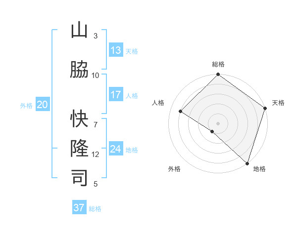 山脇 快隆司さんを姓名の画数から五運を鑑定