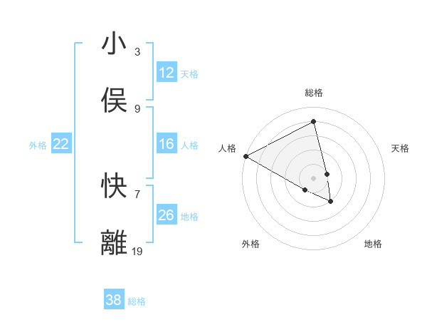小俣 快離さんの外格は22画の1点!