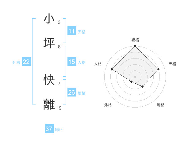小坪 快離さんの総格は37画の5点!