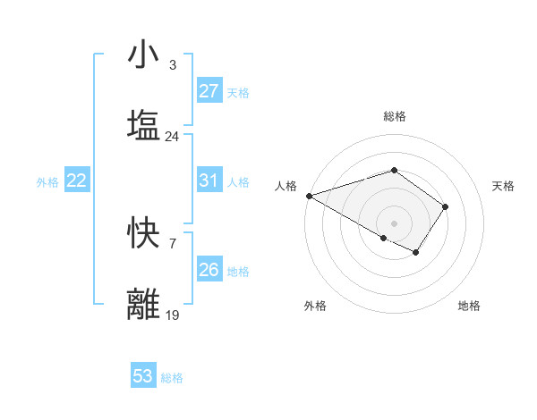 小塩 快離さんの総格は53画の3点!