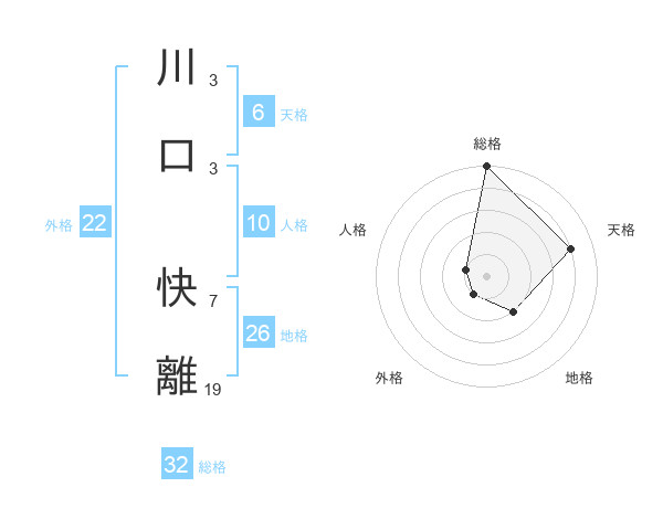 川口 快離さんの総格は32画の5点!