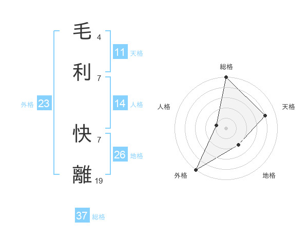 毛利 快離さんの総格は37画の5点!