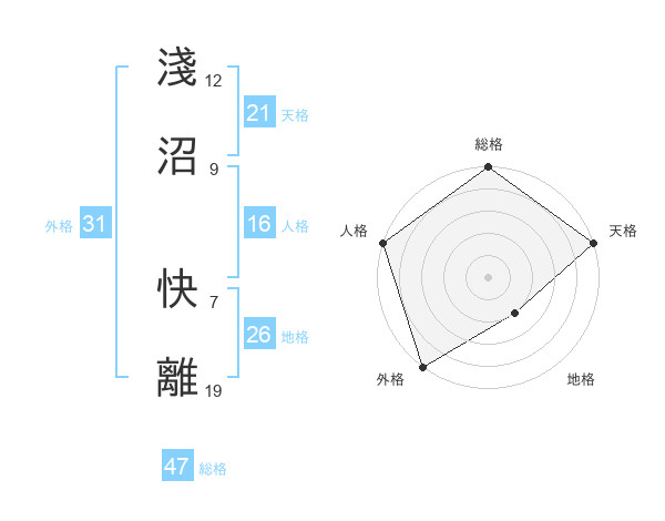 淺沼 快離さんの総格は47画の5点!