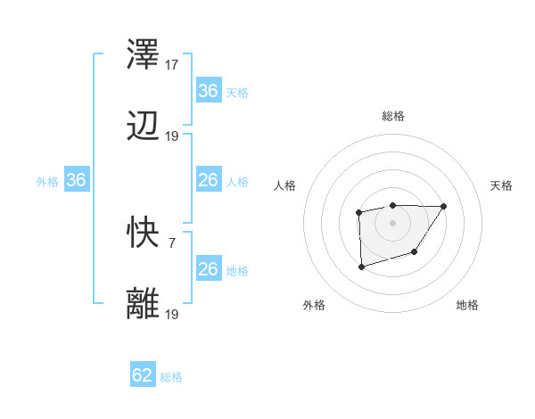 澤辺 快離さんの外格は36画の3点!