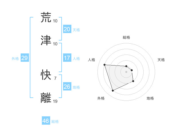 荒津 快離さんの総格は46画の1点!