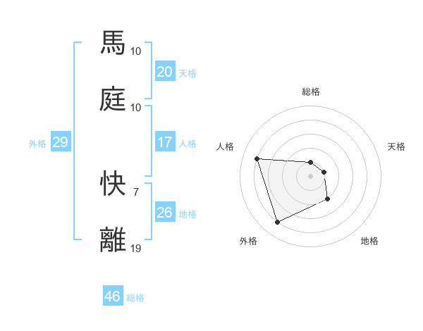 馬庭 快離さんの外格は29画の4点!