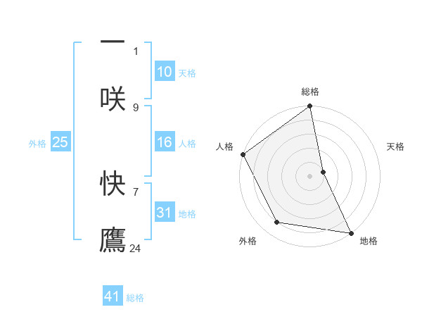 一咲 快鷹さんを姓名の画数から五運を鑑定