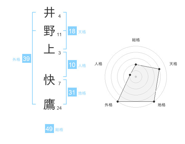 井野上 快鷹さんを姓名の画数から五運を鑑定