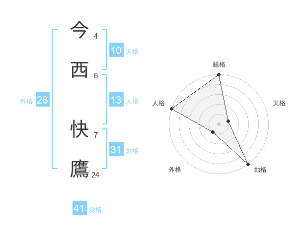 今西 快鷹さんを姓名の画数から五運を鑑定
