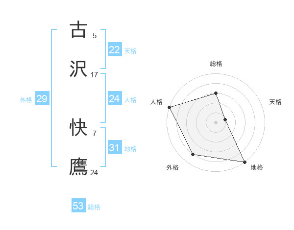 古沢 快鷹さんの地格は31画の5点!