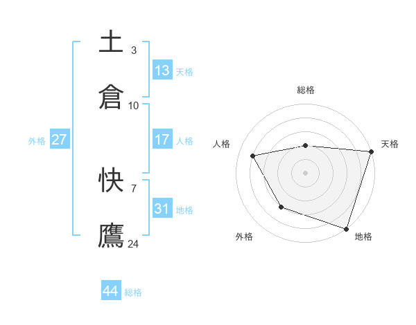 土倉 快鷹さんを姓名の画数から五運を鑑定