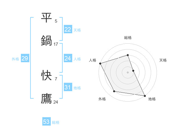 平鍋 快鷹さんの総格は53画の3点!