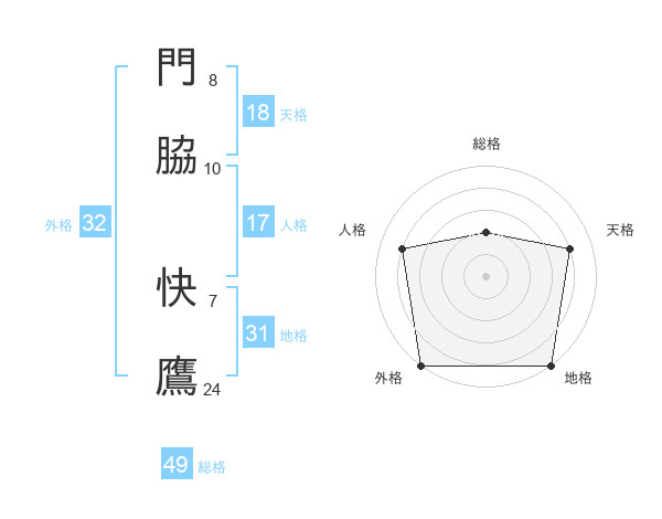 門脇 快鷹さんの総格は49画の2点!