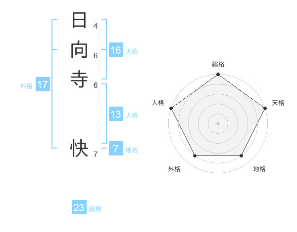 日向寺 快さんを姓名の画数から五運を鑑定