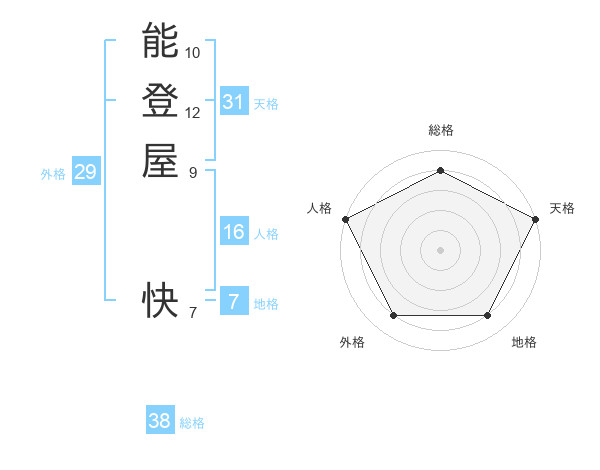 能登屋 快さんの総格は38画の4点!