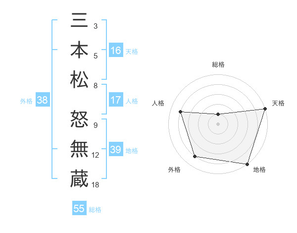 三本松 怒無蔵さんを姓名の画数から五運を鑑定