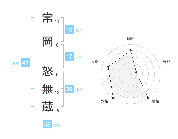 常岡 怒無蔵さんを姓名の画数から五運を鑑定