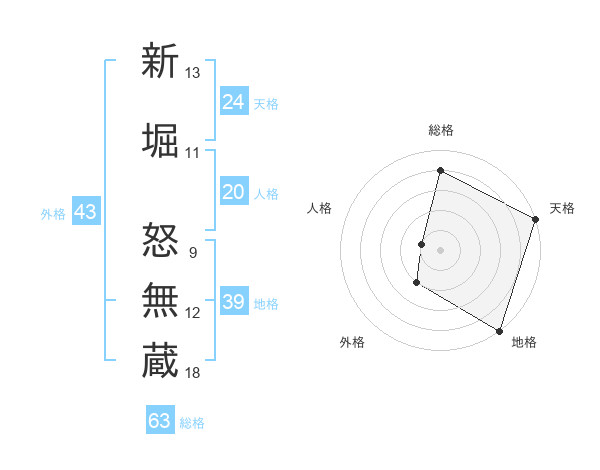 新堀 怒無蔵さんの総格は63画の4点!