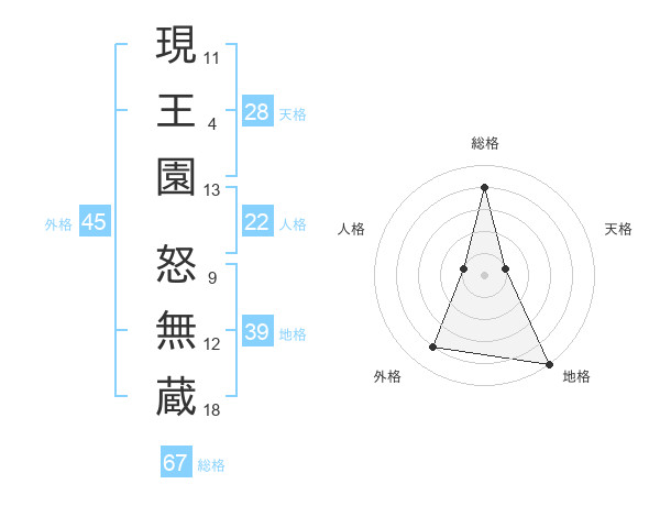 現王園 怒無蔵さんを姓名の画数から五運を鑑定