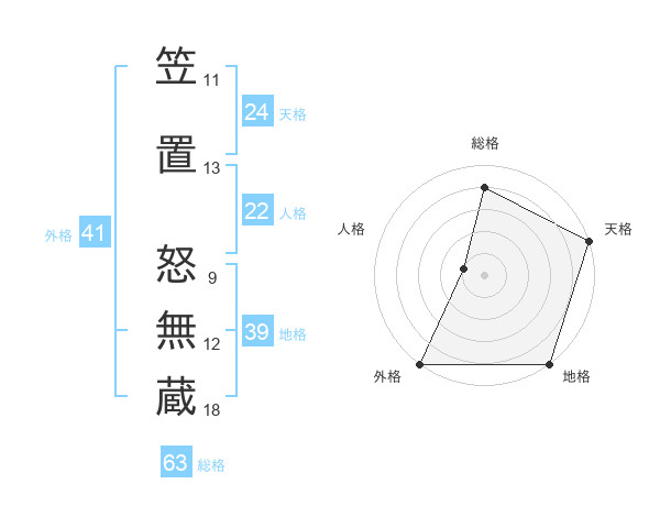 笠置 怒無蔵さんを姓名の画数から五運を鑑定