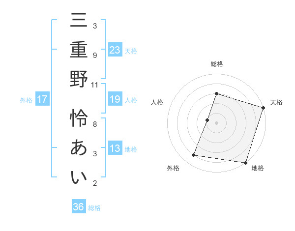 三重野 怜あいさんを姓名の画数から五運を鑑定