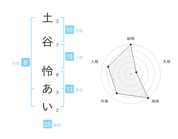 土谷 怜あいさんの総格は23画の5点!