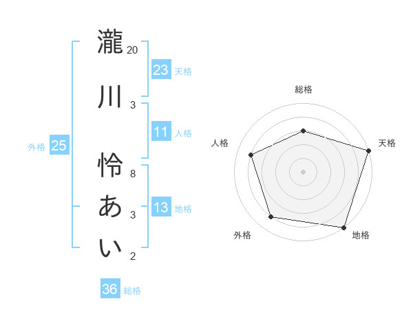 瀧川 怜あいさんを姓名の画数から五運を鑑定
