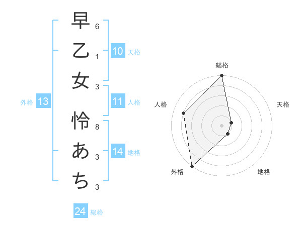 早乙女 怜あちさんを姓名の画数から五運を鑑定