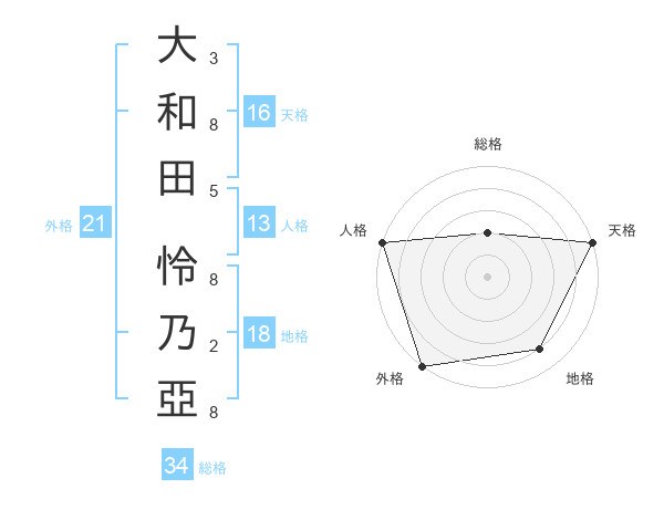 大和田 怜乃亞さんを姓名の画数から五運を鑑定