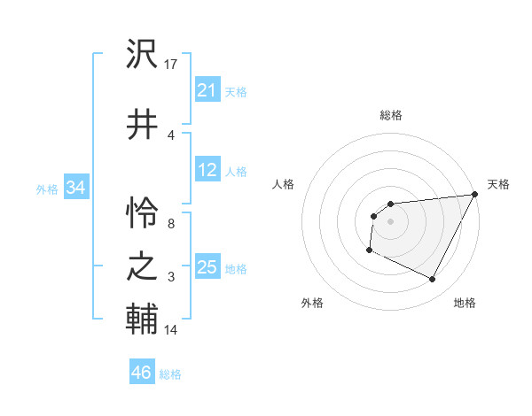 沢井 怜之輔さんの天格は21画の5点!