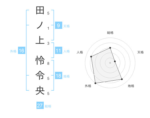 田ノ上 怜令央さんを姓名の画数から五運を鑑定