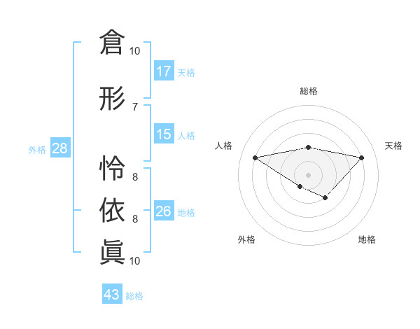倉形 怜依眞さんの天格は17画の4点!