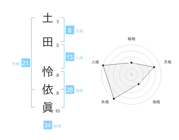 土田 怜依眞さんを姓名の画数から五運を鑑定