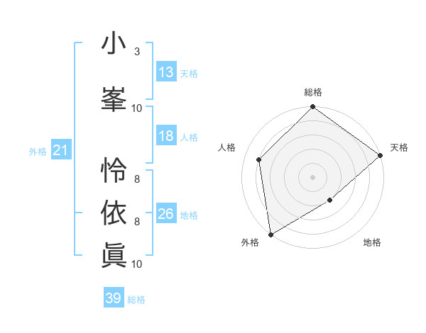 小峯 怜依眞さんを姓名の画数から五運を鑑定