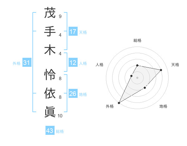 茂手木 怜依眞さんを姓名の画数から五運を鑑定